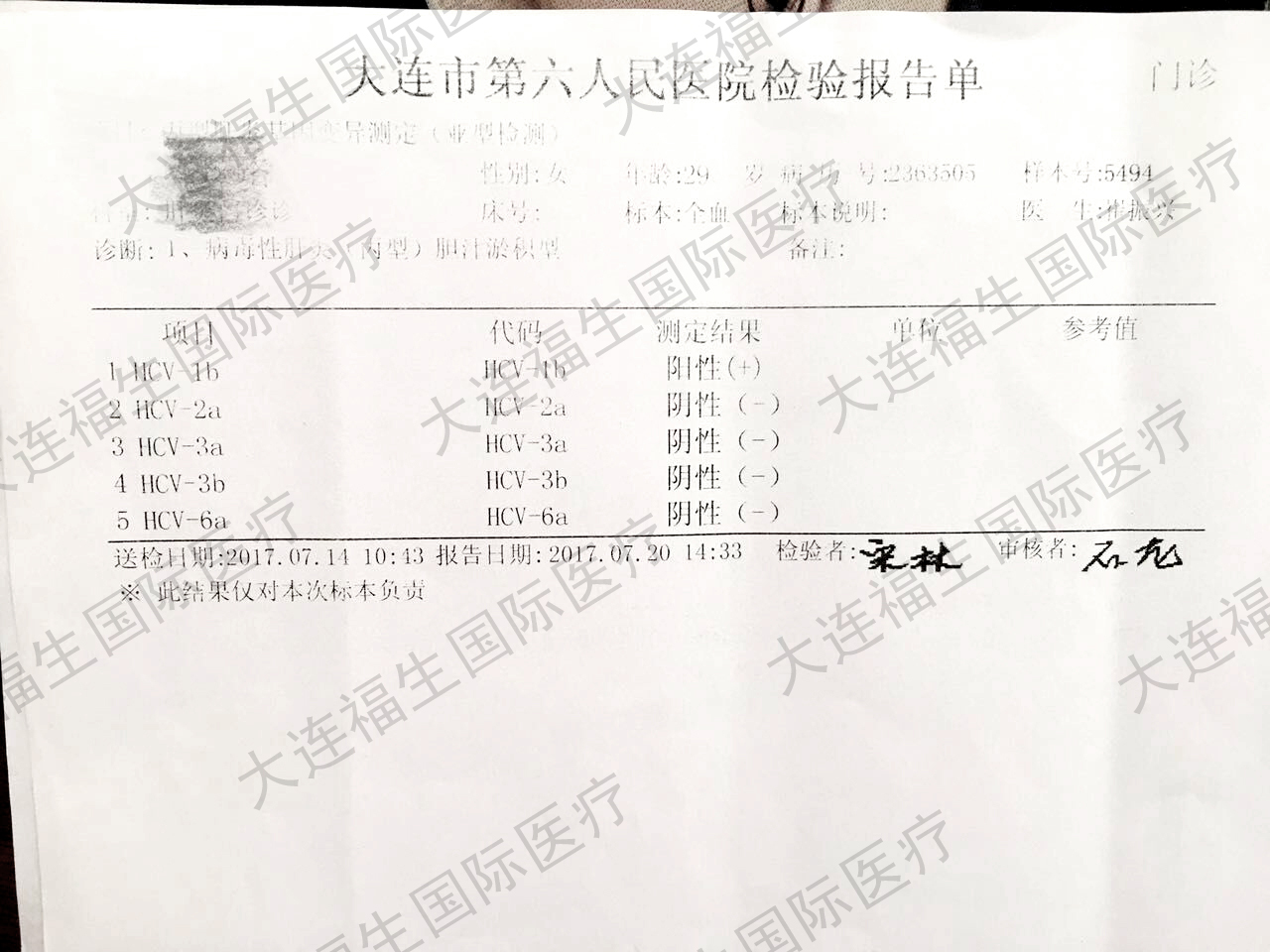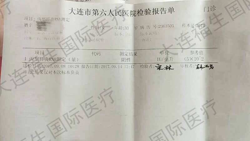 大连的患丙肝的郭女士在使用吉三代后转阴